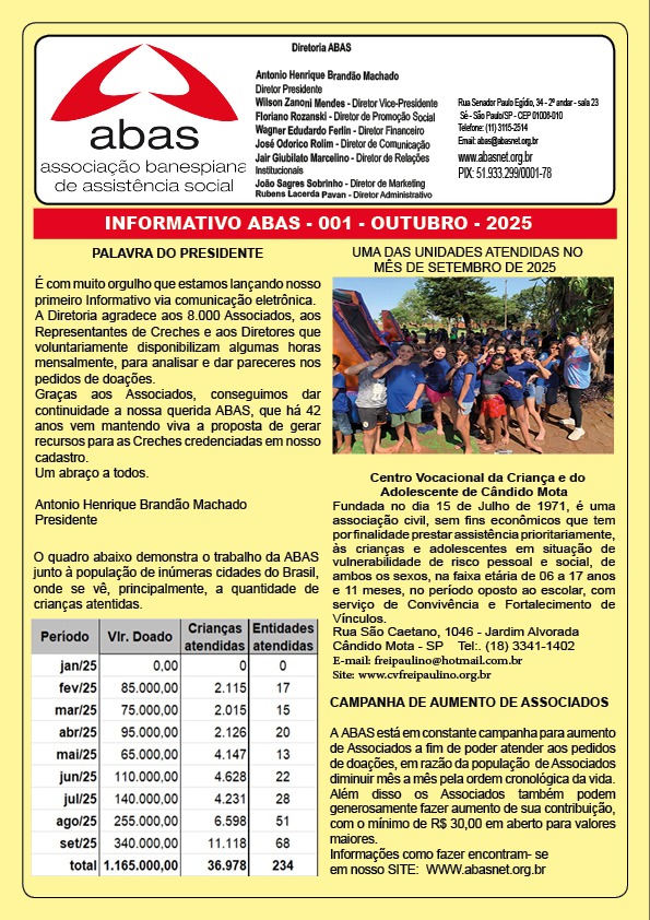 A ABAS espera continuar contando com o apoio de banespianas e banespianos para que possa continuar sua missão iniciada em 1982.